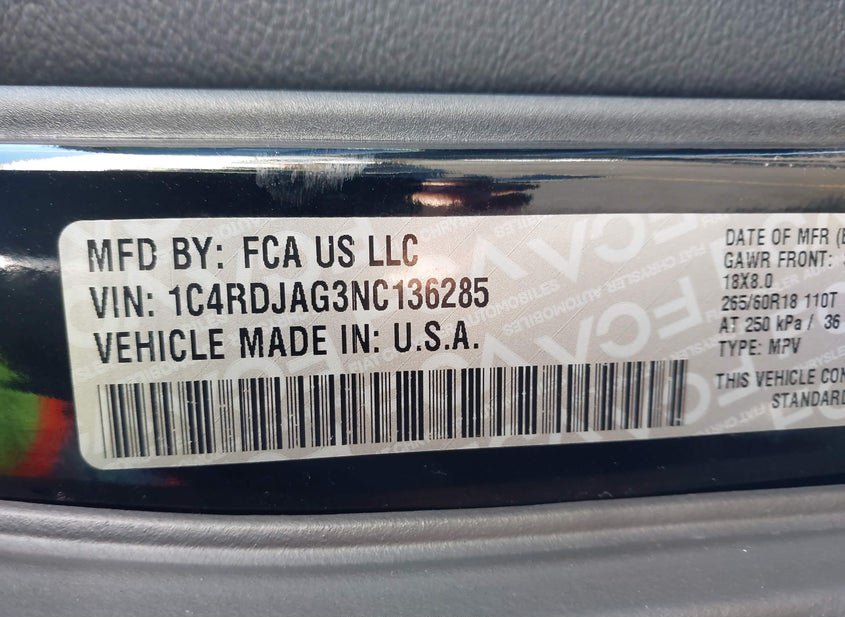- VIN: 1C4RDJAG3NC136285