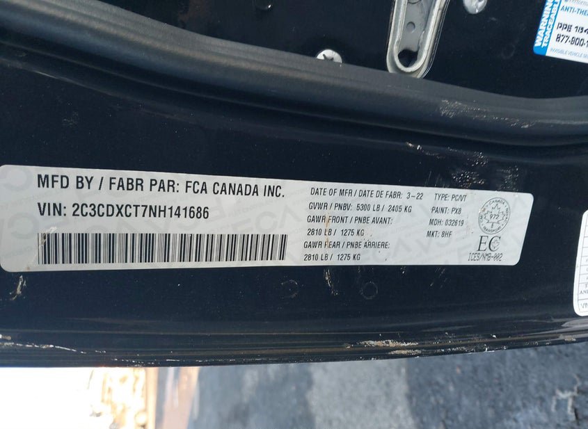 - VIN: 2C3CDXCT7NH141686