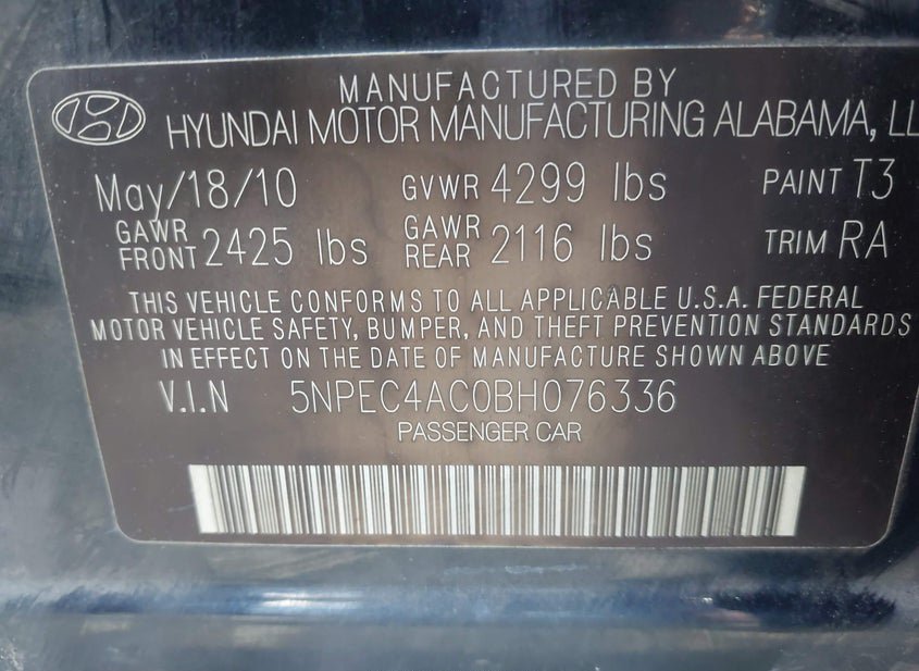 - VIN: 5NPEC4AC0BH076336