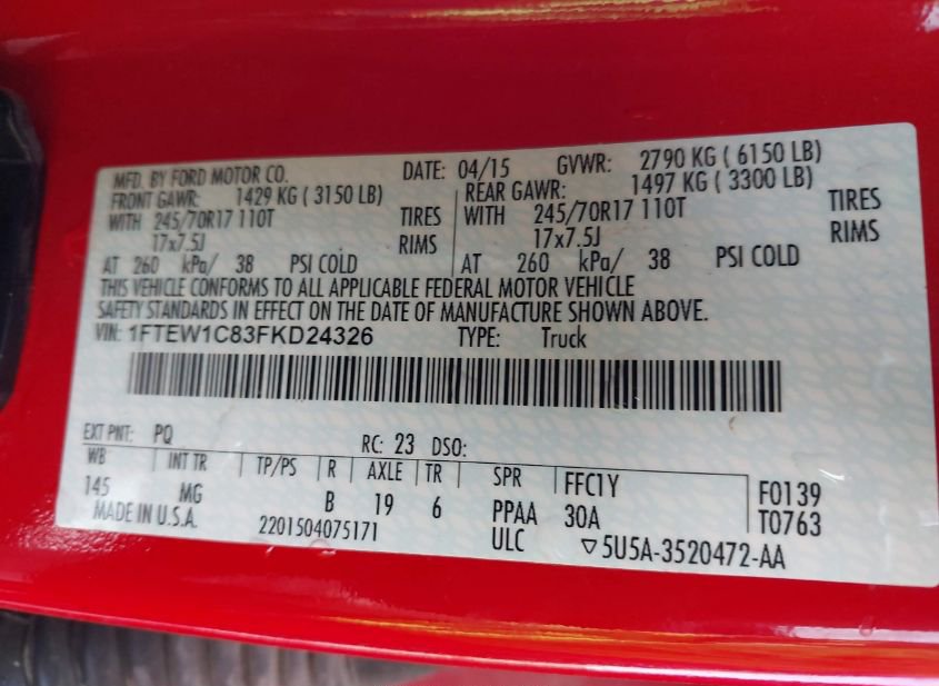 - VIN: 1FTEW1C83FKD24326