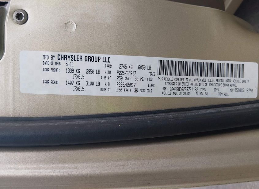 - VIN: 2A4RR8DG2BR761182