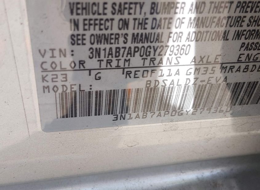 - VIN: 3N1AB7AP0GY279360