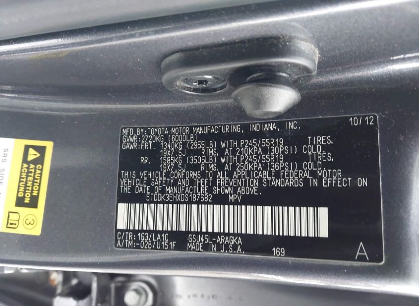 - Название лота: 2013 TOYOTA HIGHLANDER LIMITED V6