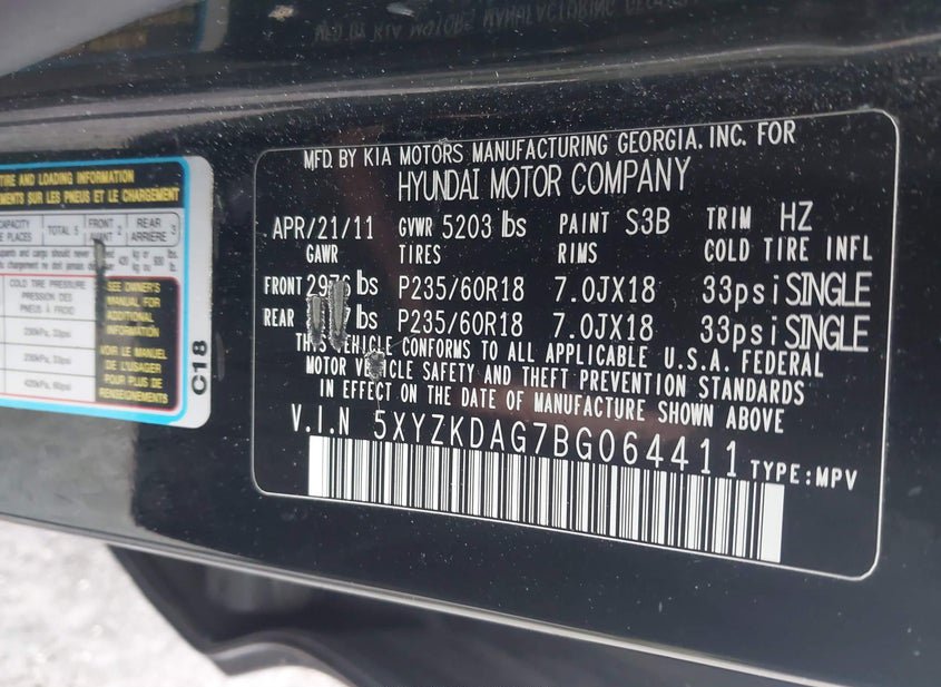 - VIN: 5XYZKDAG7BG064411