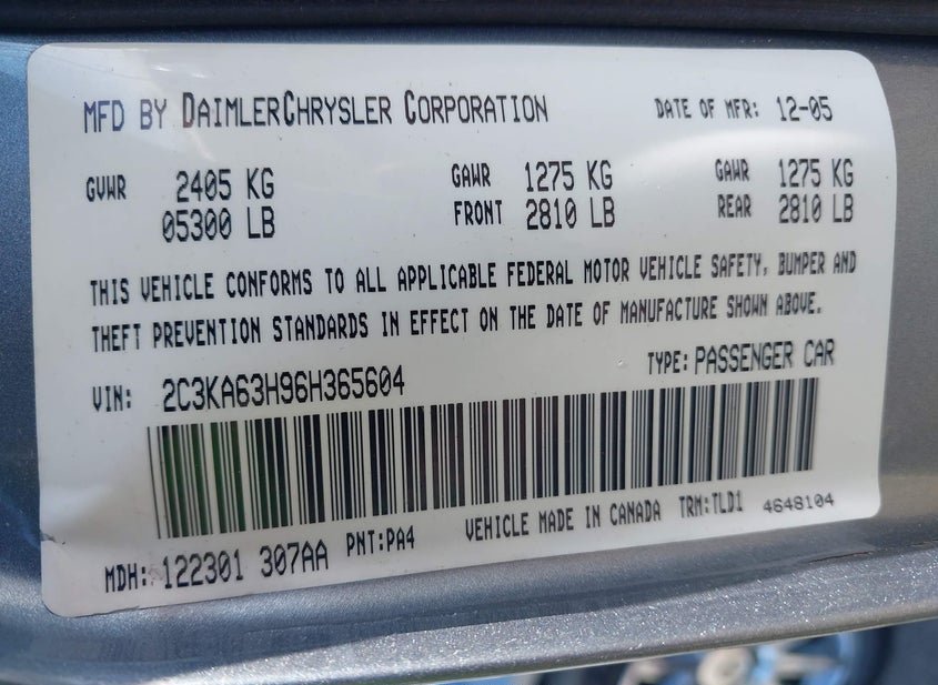 - VIN: 2C3KA63H96H365604