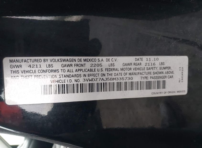 - VIN: 3VWDZ7AJ5BM335730