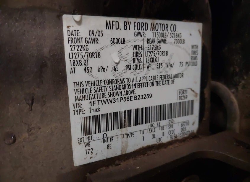 - VIN: 1FTWW31P56EB23259