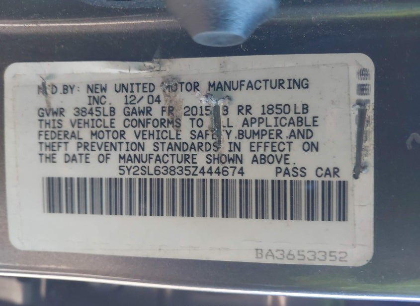 - VIN: 5Y2SL63835Z444674
