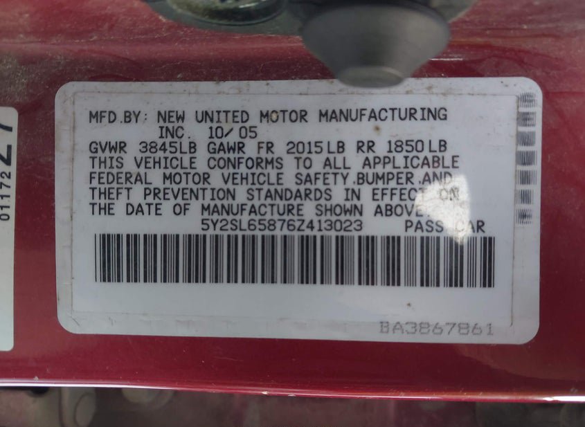 - VIN: 5Y2SL65876Z413023