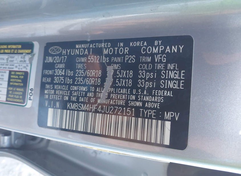 - VIN: KM8SM4HF4JU272151