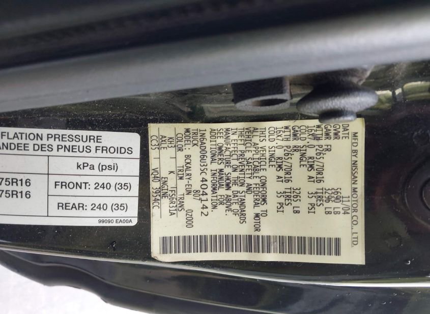 - Название лота: 2005 NISSAN FRONTIER SE