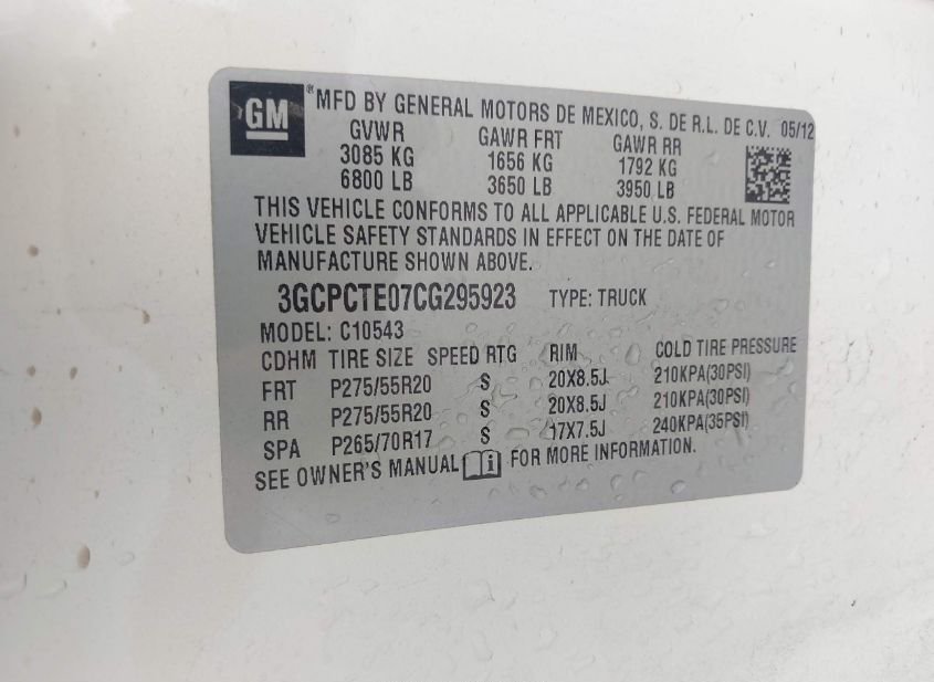 - VIN: 3GCPCTE07CG295923