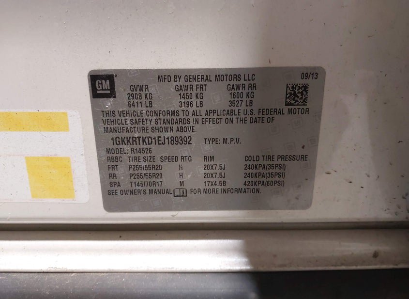 - VIN: 1GKKRTKD1EJ189392