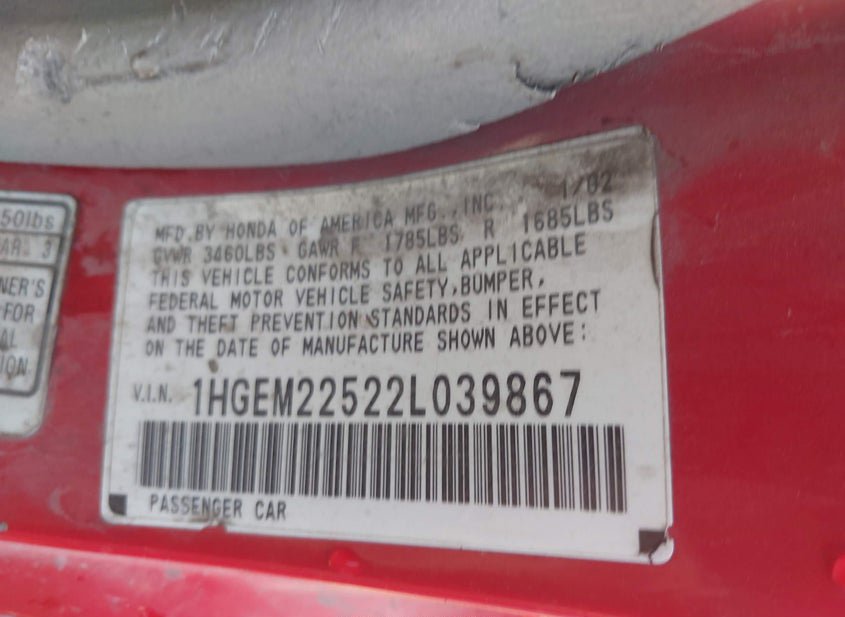- VIN: 1HGEM22522L039867