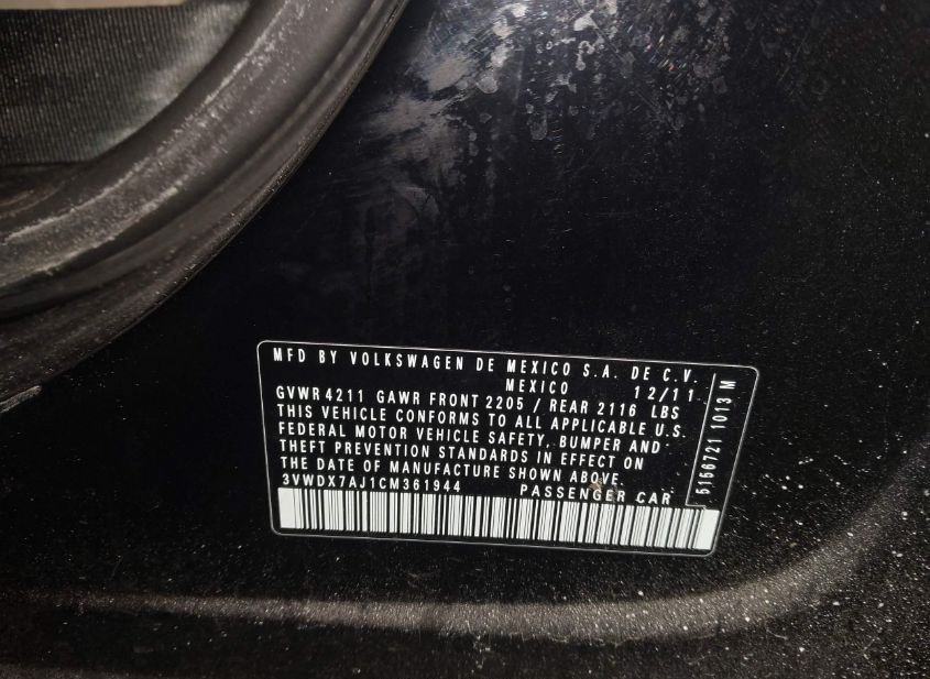 - VIN: 3VWDX7AJ1CM361944