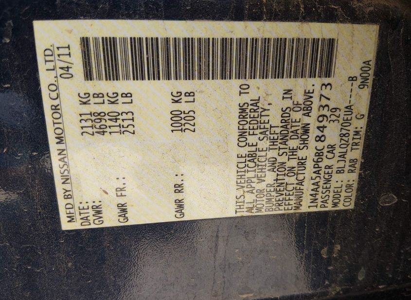 - VIN: 1N4AA5AP6BC849373
