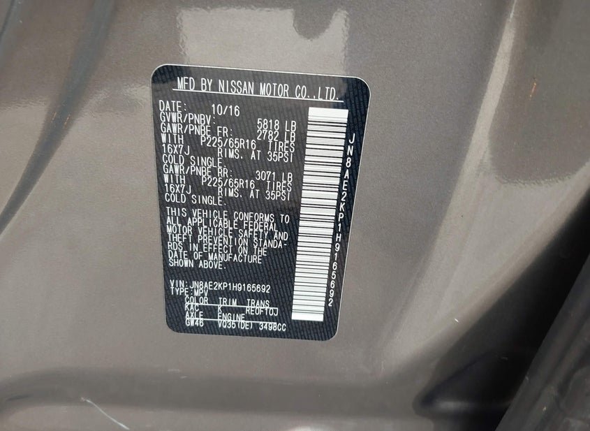 - VIN: JN8AE2KP1H9165692