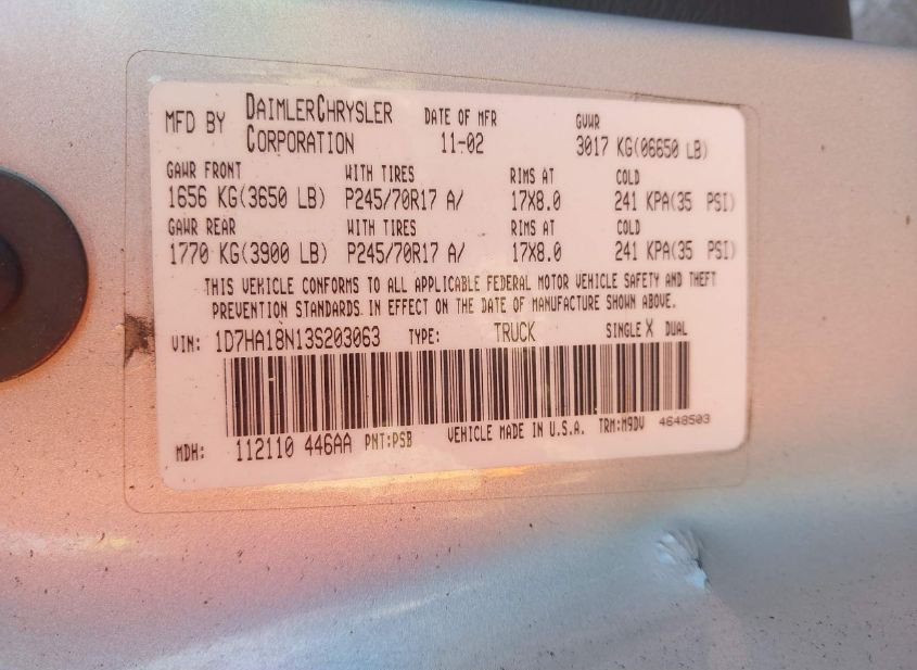 - VIN: 1D7HA18N13S203063