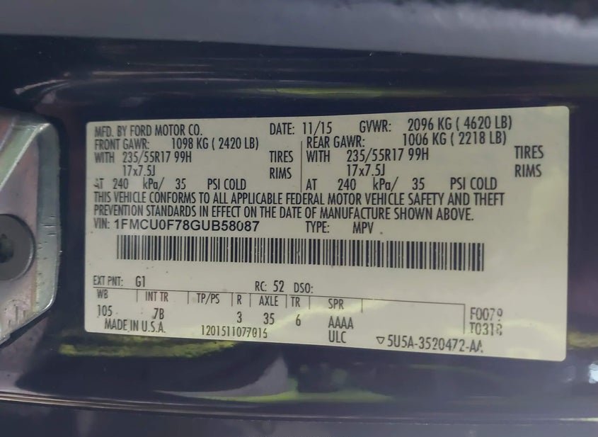 - VIN: 1FMCU0F78GUB58087