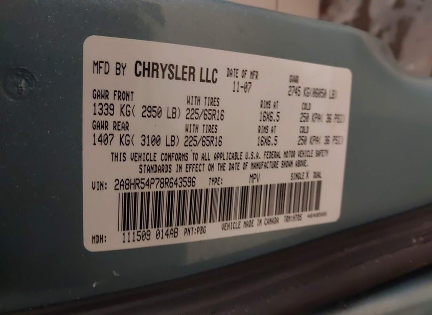 - VIN: 2A8HR54P78R643596