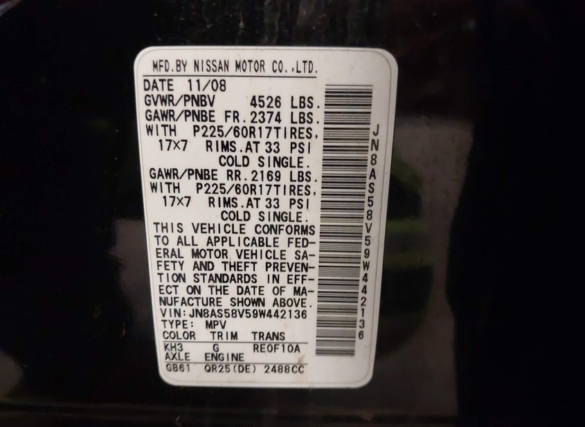 - VIN: JN8AS58V59W442136