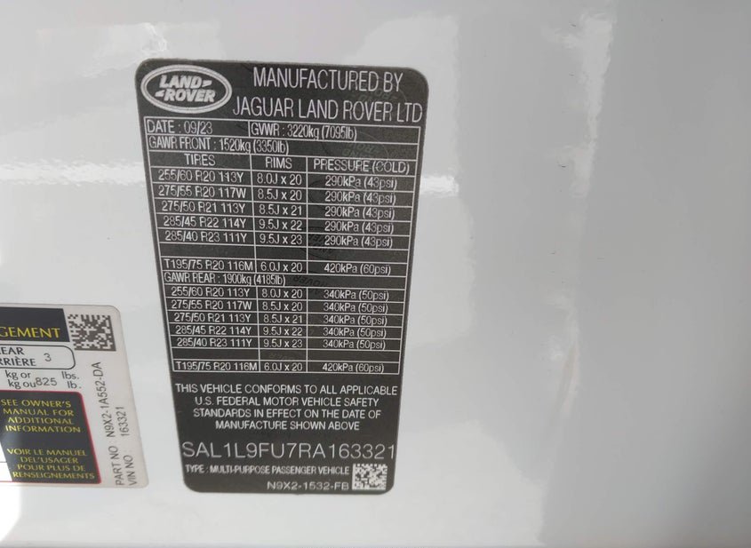 - VIN: SAL1L9FU7RA163321