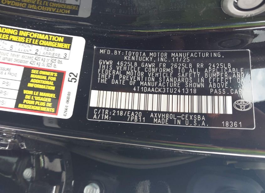 - VIN: 4T1DAACK3TU241318