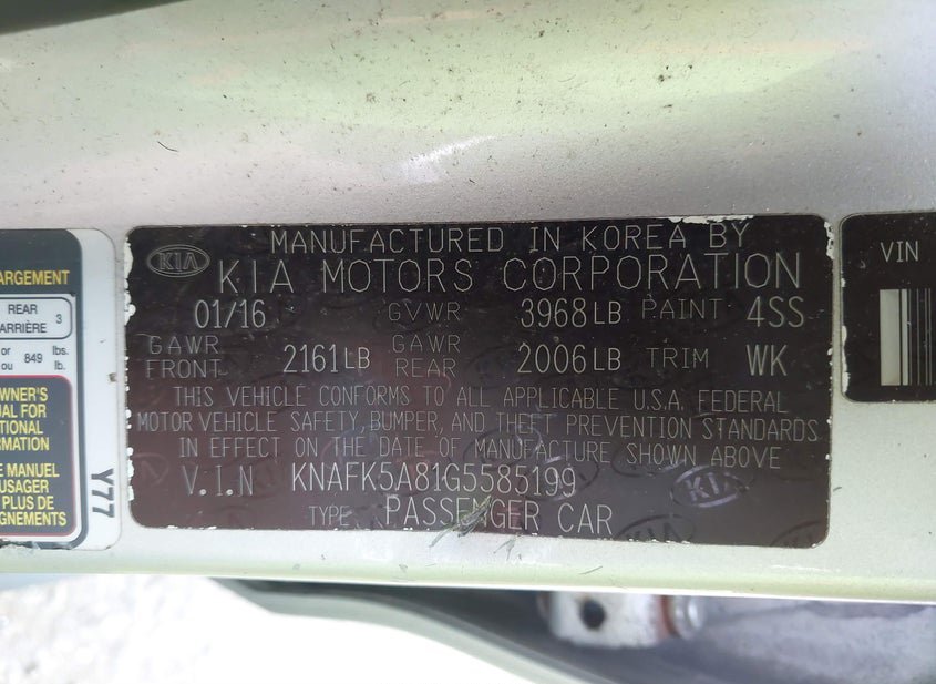 - VIN: KNAFK5A81G5585199