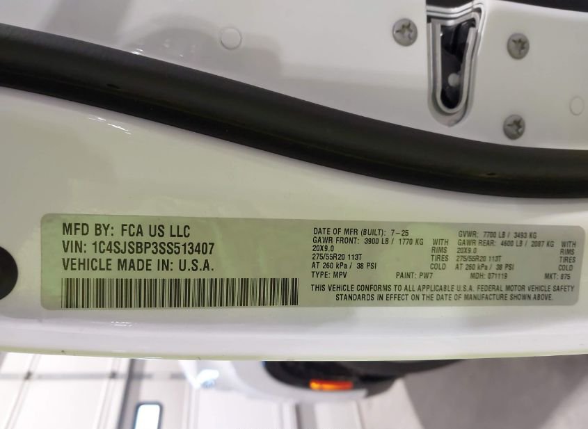 - VIN: 1C4SJSBP3SS513407