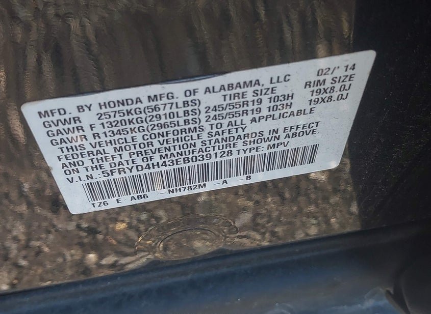 - VIN: 5FRYD4H43EB039128