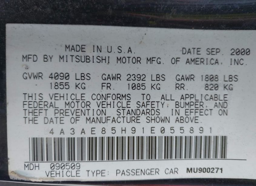 - VIN: 4A3AE85H91E055891