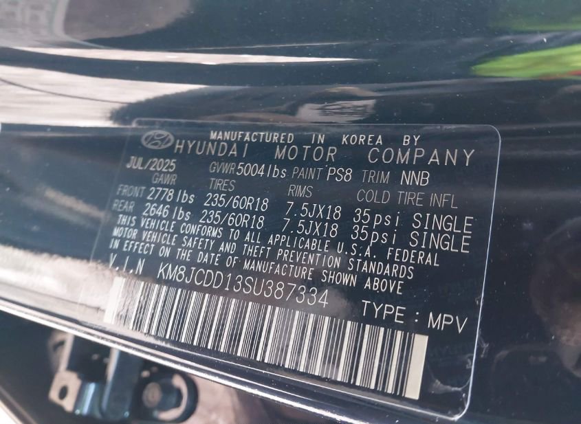 - VIN: KM8JCDD13SU387334