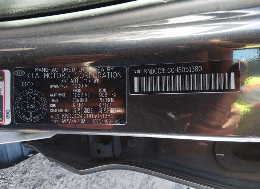 - VIN: KNDCC3LC0H5051380