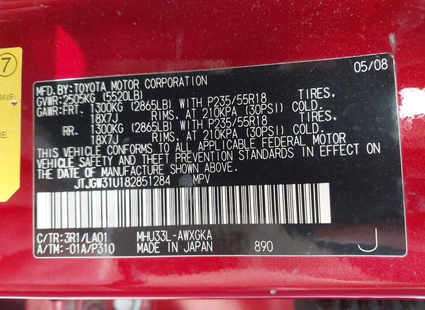 - VIN: JTJGW31U182851284