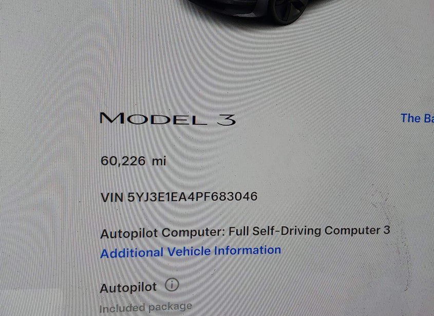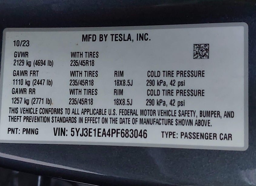 - VIN: 5YJ3E1EA4PF683046