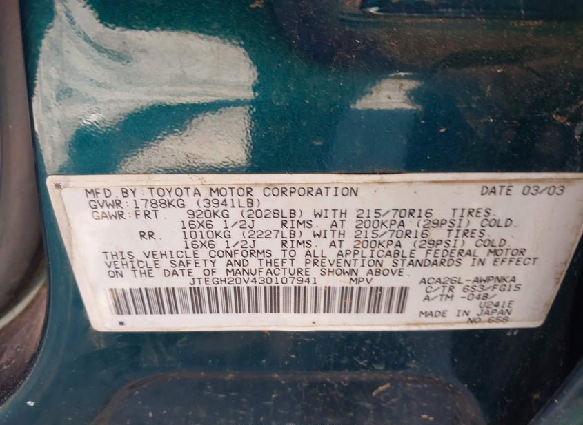 - VIN: JTEGH20V430107941