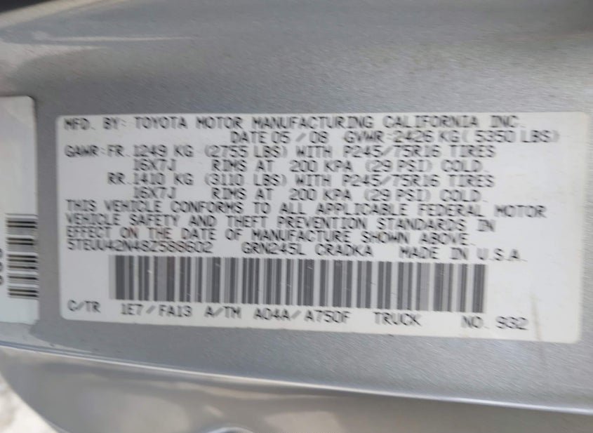 - VIN: 5TEUU42N48Z588602