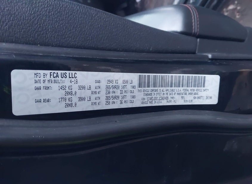 - VIN: 1C4RDJDG1JC302499