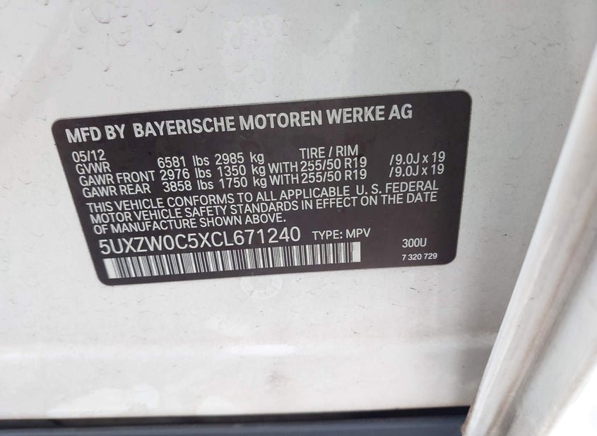 - VIN: 5UXZW0C5XCL671240