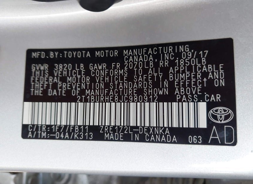 - VIN: 2T1BURHE8JC980912