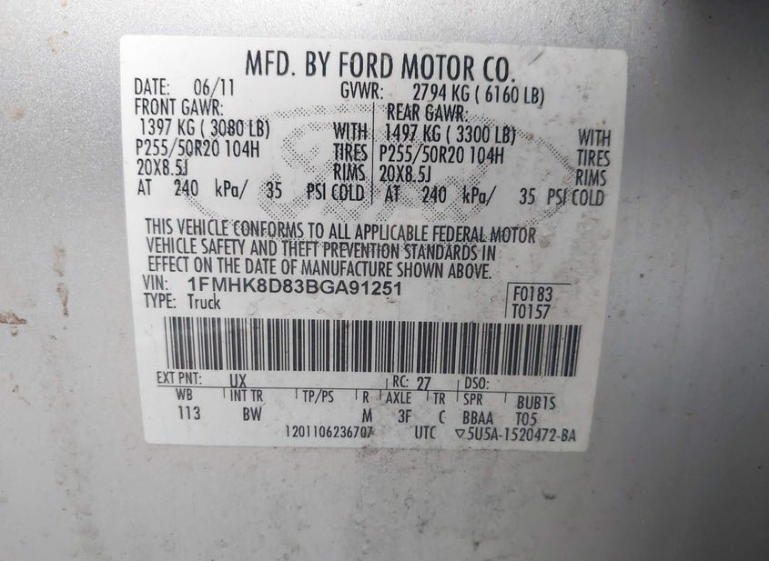 - VIN: 1FMHK8D83BGA91251