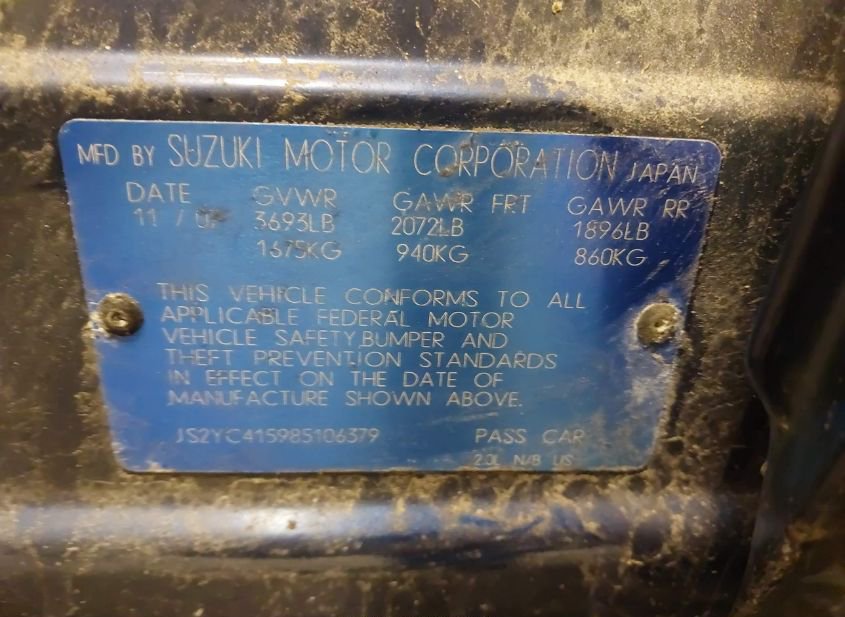 - VIN: JS2YC415985106379