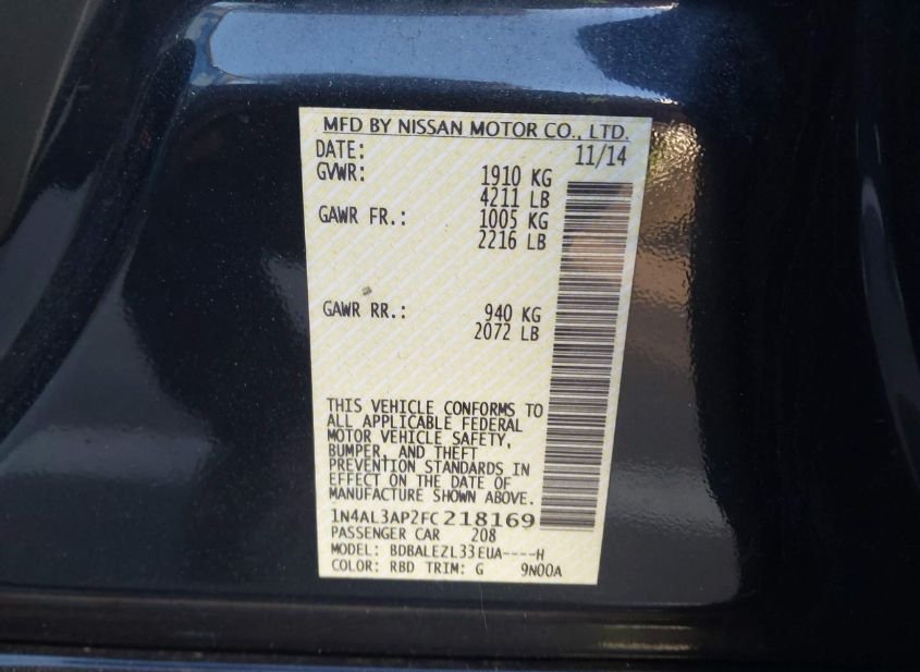 - VIN: 1N4AL3AP2FC218169