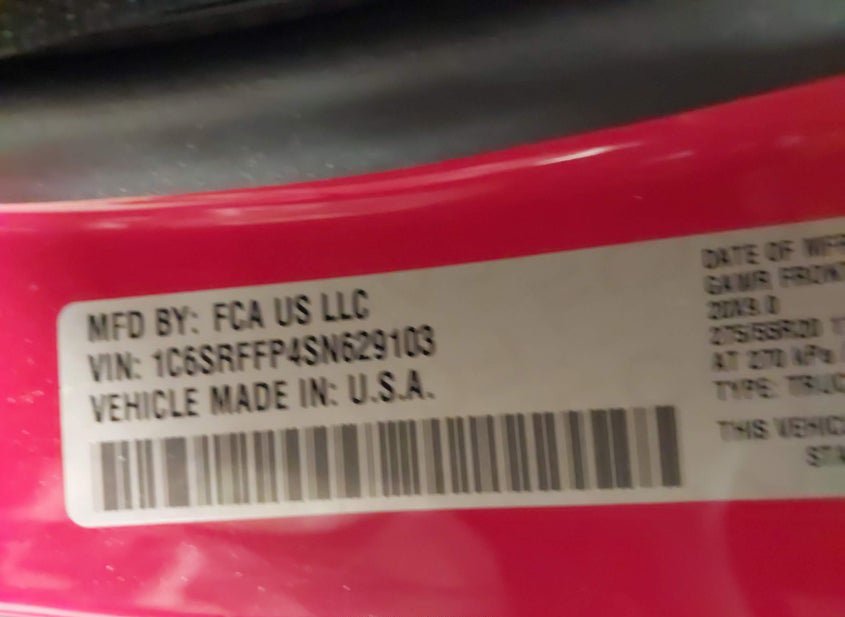 - VIN: 1C6SRFFP4SN629103
