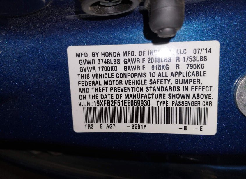 - VIN: 19XFB2F51EE069930
