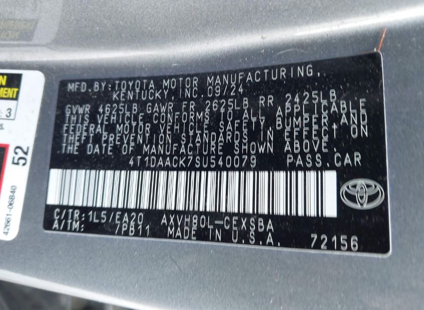 - VIN: 4T1DAACK7SU540079