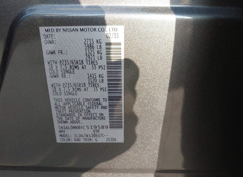 - VIN: 5N1AL0MN8FC519589
