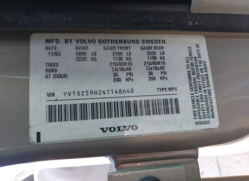 - VIN: YV1SZ59H241148648