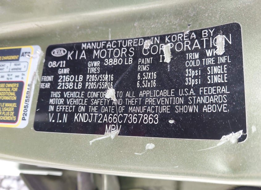 - VIN: KNDJT2A66C7367863