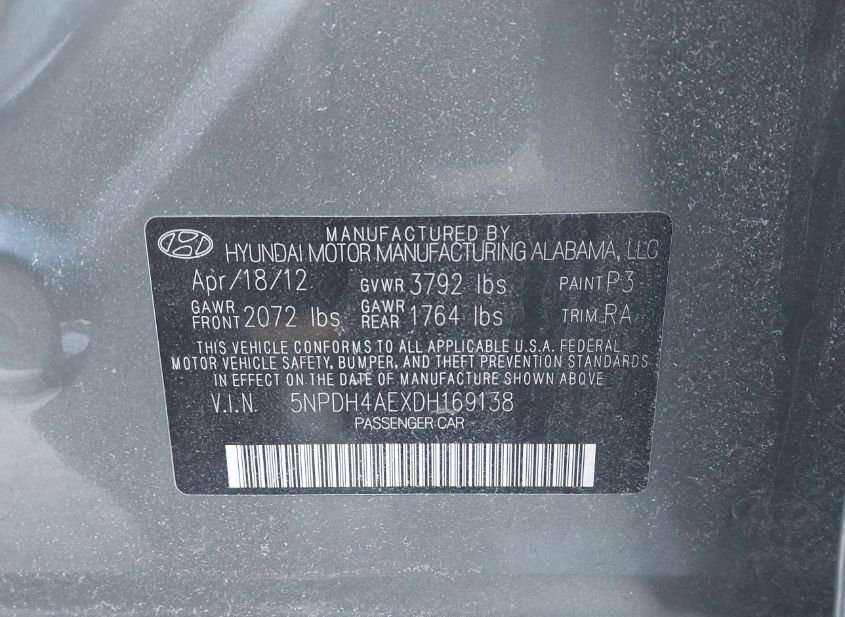 - Название лота: 2013 HYUNDAI ELANTRA GLS/LIMITED